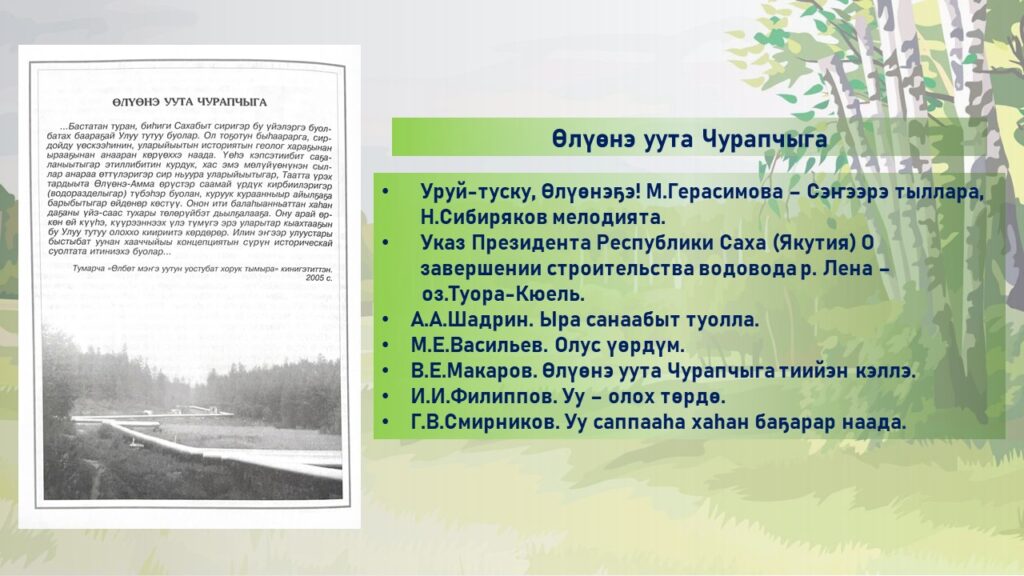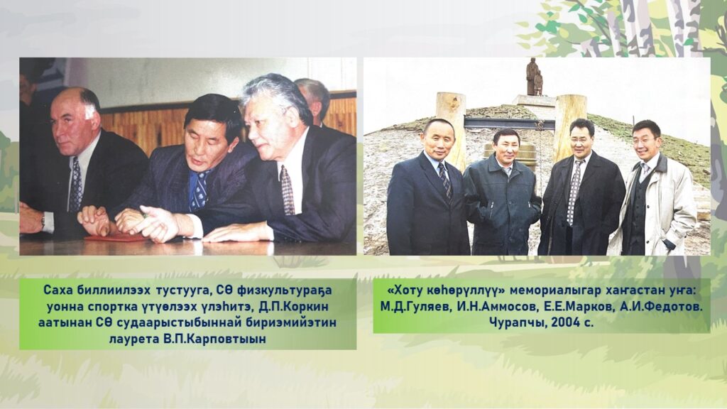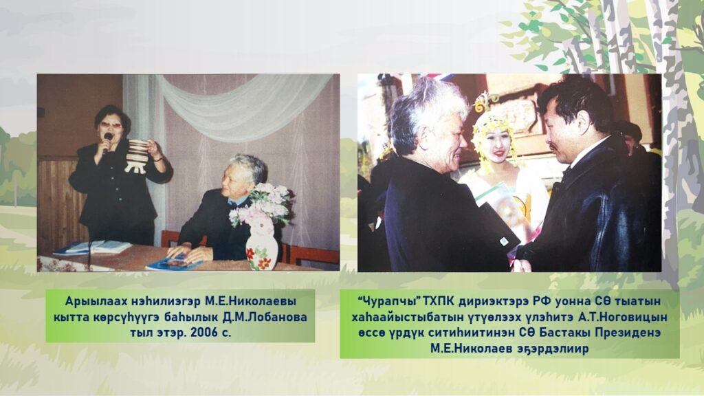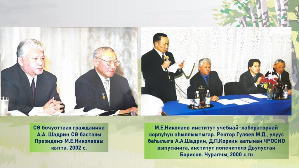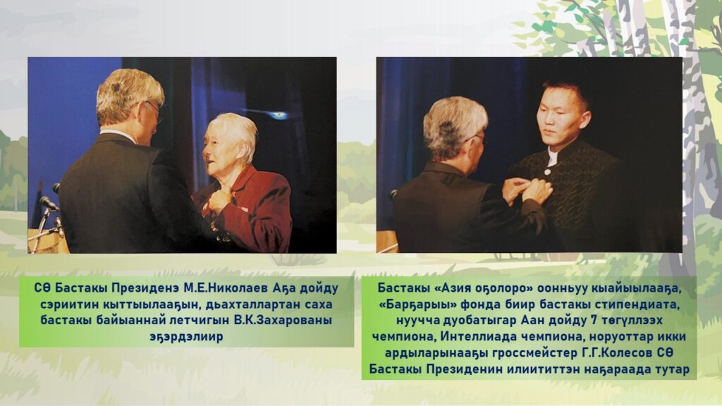 Россияҕа Аҕа дойдуну көмүскээччи, Саха Республикатыгар Төрөөбүт Дойдуну көмүскээччи сылларынан уонна «Ыал саргыта» улуус пилотнай...