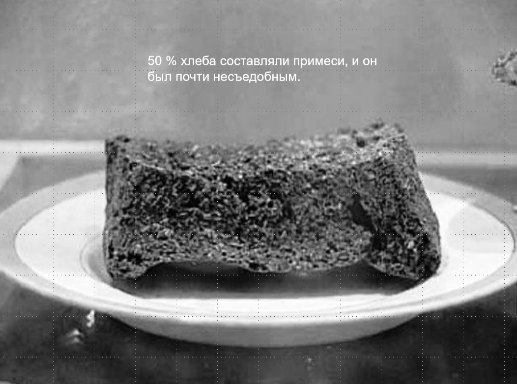 При этом до 50 % хлеба составляли примеси, и он был почти несъедобным. Все остальные продукты почти перестали выдаваться.