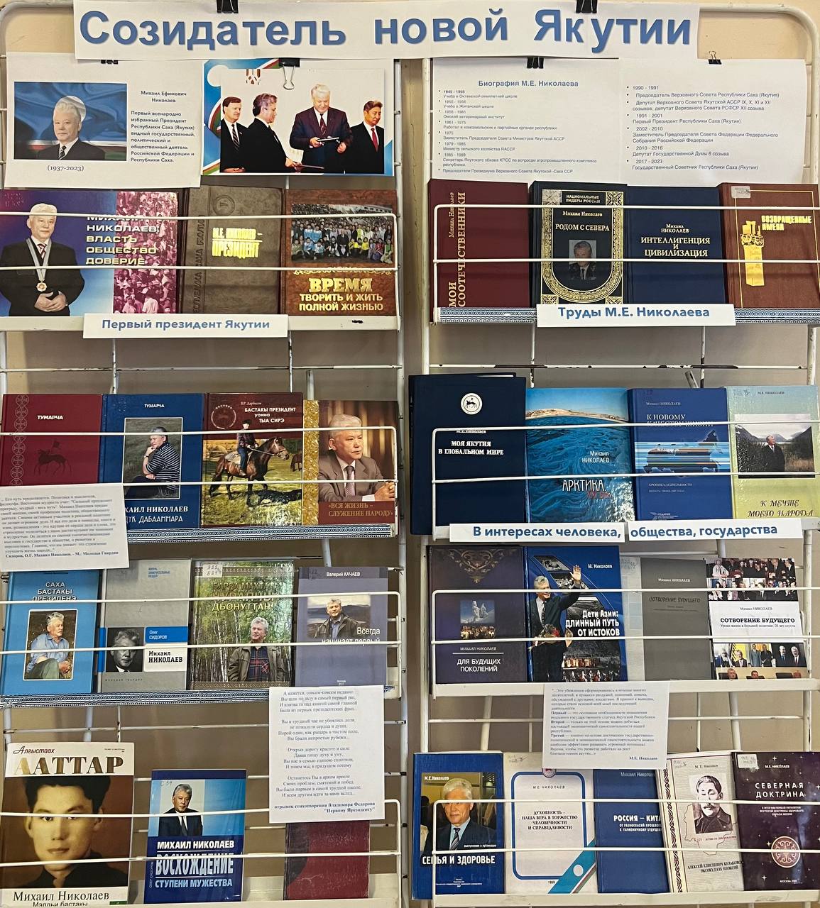 Михаил Ефимович Николаев родился 13 ноября 1937 г. в Октемском наслеге Орджоникидзевского района. Отец — Николаев Ефим Федорович, уроженец Хатасского наслега пригородного района г. Якутск. Мать — Николаева (Козлова) Мария Михайловна родилась в большой многодетной русской семье с.Техтюр Хангаласского улуса.В честь дня рождения первого Президента Республики Саха (Якутия) предлагаем посмотреть выставку книг М.Е. Николаева в читальном зале Чурапчинской центральной библиотеки.