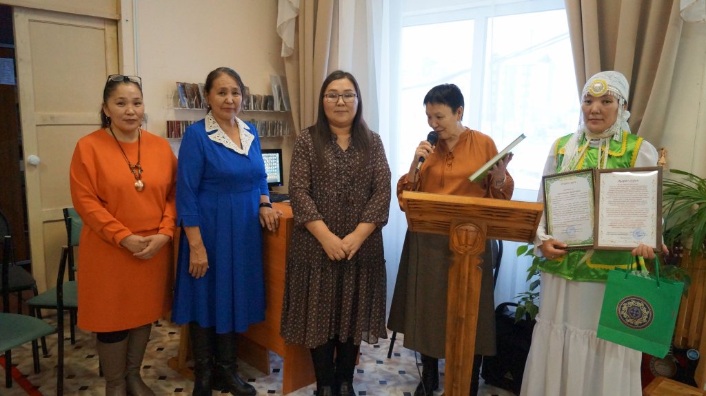 Алтынньы 28 күнүгэр улуустааҕы киин библиотека ааҕар саалатыгар «Алгыс» литературнай-музыкальнай салонугар Саха Өрөспүүбүлүкэтин үөрэҕириитин туйгуна, Чурапчы улууһун үөрэх салалтатын экономическай отдел экономиһа, олохтоох ааптар Марина Ивановна Захарова – Күөгэйэ Хатыҥ күн сиригэр сабыыс саҥа боруолуу сылдьар «Кыырай халлааҥҥа көттөрбүн» диэн алгыстар, кэс тыл, хоһооннор, хомуурунньуктарын кинигэтин сүрэхтэниитэ буолан ааспыта. Дьоро күн Аар айылҕаттан айдарыылаах, Ийэ айылҕата ууммут этитиилээх ураты бэлэҕин кутугар-сүрүгэр иҥэрэн, тыл абылаҥнаах дьүрүлгэнин дьиримнэтэ оонньотор Күөгэйэ Хатыҥ арчылыыр алгыһынан саҕаламмыта. Кинигэ Дьокуускай куоракка “Офсет” кинигэ кыһатыгар 2022 сыл бэс ыйын 24 күнүгэр, 40 страницалаах, 50 тираһынан бэчээттэнэн тахсыбата. Эппиэттиир эрэдээктэринэн, корректорынан, версткатын оҥоруутунан Дмитрий Петрович Коркин аатынан Чурапчытааҕы өрөспүүбүлүкээнискэй спортивнай олимпийскай эрэл интернат оскуолаҕа саха тылын уонна литературатын учуутала, СӨ үөрэҕириитин туйгуна, «Россия чулуу учуутала–2017» национальнай бырайыак кыайыылааҕа, өрөспүүбүлүкэтээҕи «Көтүөххэ үрдүккэ хотойдуу» уоланнар ааҕыыларын ааптара Акулина Николаевна Кузьмина буолар. Ааптарбыт иллэҥ кэмигэр баайарын, иистэнэрин, оҕуруонан анньарын, туоһунан иистэнэрин, араас дьэрэкээн сахалыы оҥоһуктары оҥорор. Кини оҥоһуктарын быыстапката дьон болҕомтотун тардыан тарта. Надежда Колодезникова «Холонуу», Вероника Маркова – Үрүҥ үйэн «Арылыйа», Надежда Попова «Сэттэ мэтириэт» хоһооннору, Татьяна Ушницкая, Евдокия Слепцова «Көттүм көй салгыҥҥа», Сардаана Федорова «Кэрэ куо», Светлана Ксенофонтова–Илгэйэ «Уоскулаҥ сааһыланар» алгыстары ааҕаннар сүрэхтэрии киэһэтин киэргэттилэр. Бииргэ үлэлиир коллегалара: экономическай отдел начальнига Николай Попов, профсоюз бэрэсэдээтэлэ Егор Давыдов, исписэлиис Анатолий Мандаров «Мичил» уһуйаан сэбиэдиссэйэ Марианна Яковлева, улуустааҕы кииннэмит библиотечнай ситим дириэктэрэ Вера Платонова, бэтэрээн бухгалтердар ааттарыннан Чакыр олохтооҕо Мария Ширяева, улуус оскуолаларын директордарын ааттарыттан А.П. Илларионов аатынан Хайахсыт орто оскуолатын директора Федор Борисов уо.д.а. ааптарга айар үлэ алыптаах аартыгынан аҕыраан ылбакка айаныырыгар, уран тыл иэйиитигэр уһун сылларга уостан хаалбакка умсугуйарыгар ис сүрэхтэн тахсар баҕа санааларын, алгыстарын анаатылар.Марфа КузьминаУлуустааҕы киин библиотека исписэлииһэ.