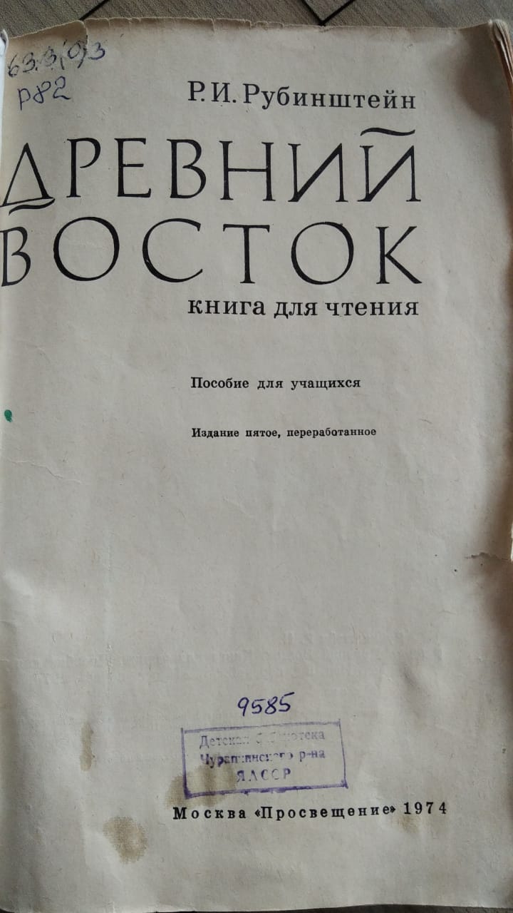 Чурапчытаа5ы о5о библиотеката Гуляева Е.П. «Древний Восток» (1974) учебнигы,