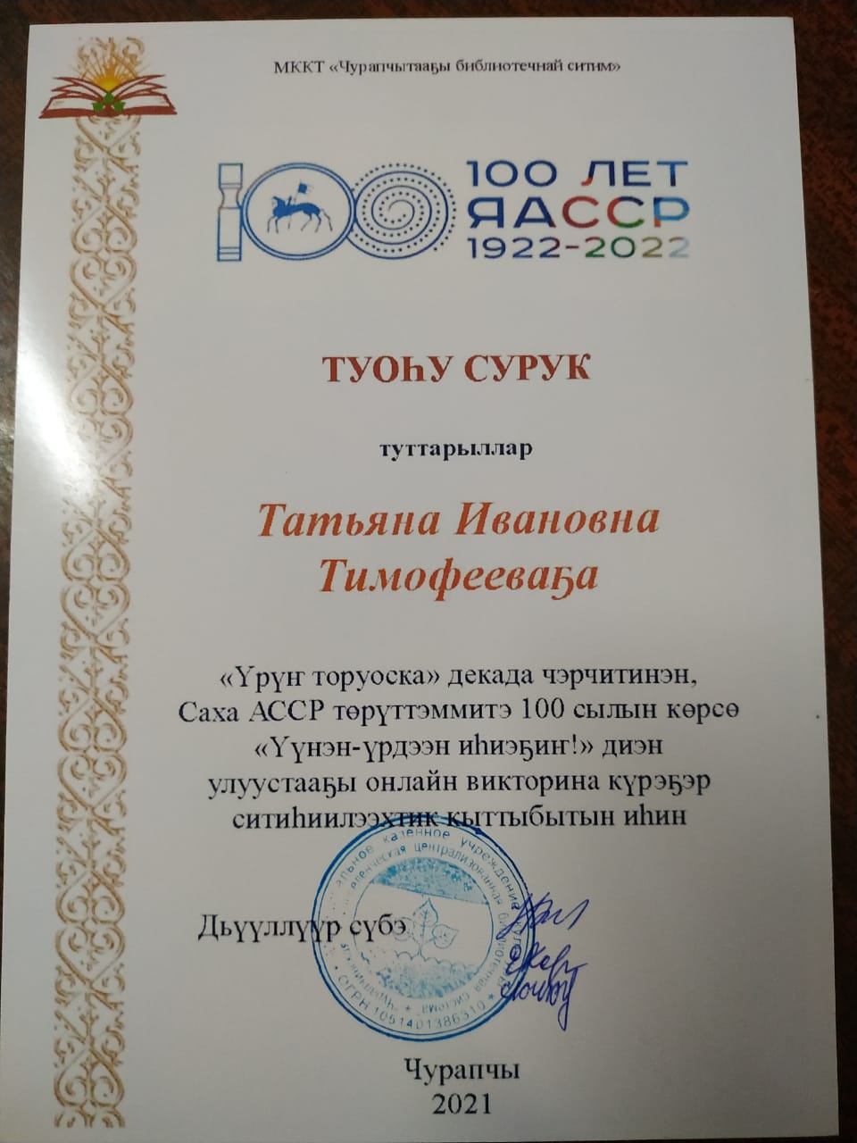 Чурапчытаа5ы киин библиотека