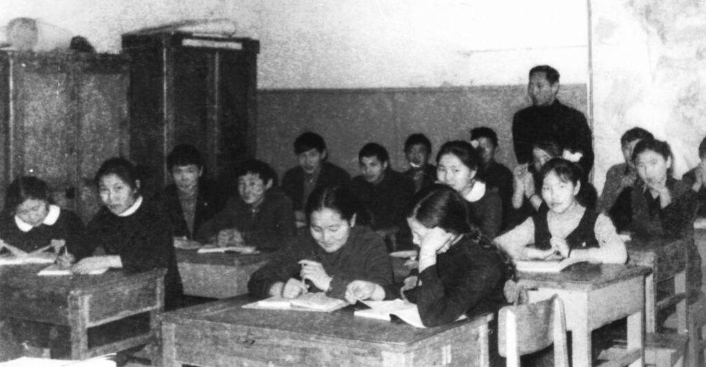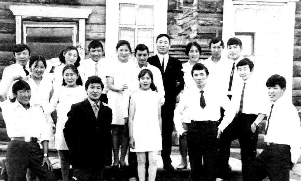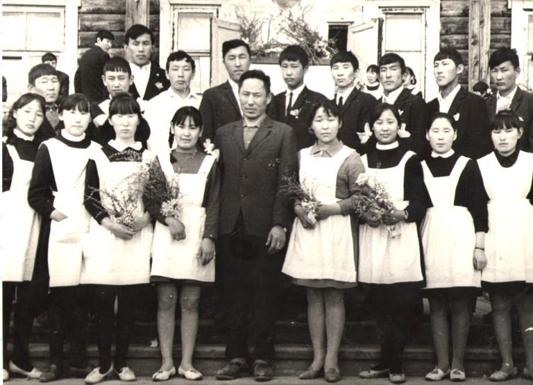 Классный руководитель В.С. Яковлев — Далан с учениками X «б» класса. 18-ый выпуск, 1971 год.