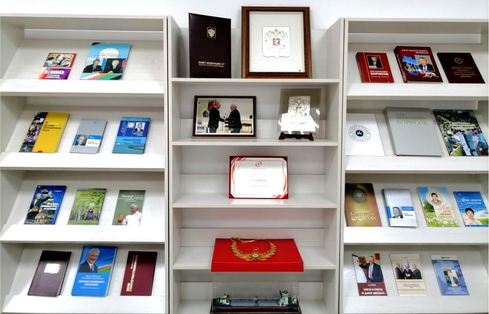 Фонд семейной библиотеки Е.А. Борисова состоит из книг, картин, сувениров, подаренных улусами, предприятиями, российскими и международными организациями. Фонд составляет около 4000 экземпляров книг, пополнен дарственными картинами в количестве 107 штук и сувенирами 590 штук.