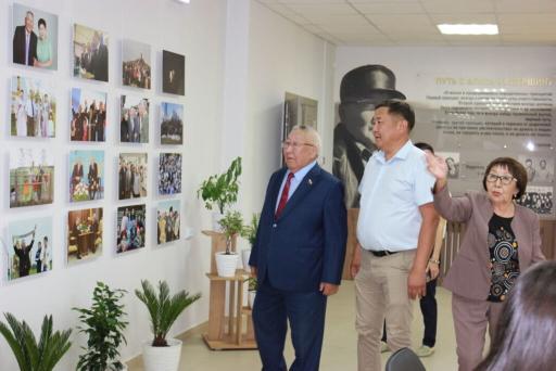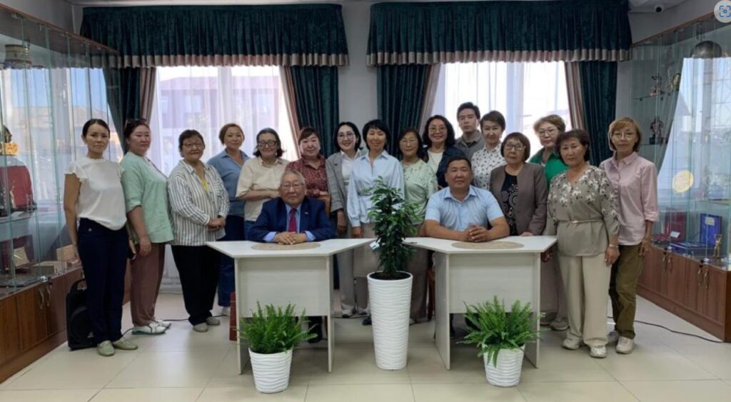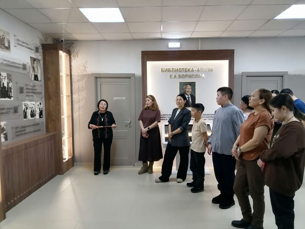 Участники пресс-тура «Один день с сенатором РФ Е.А. Борисовым» в улусной библиотеке. 2024 г.