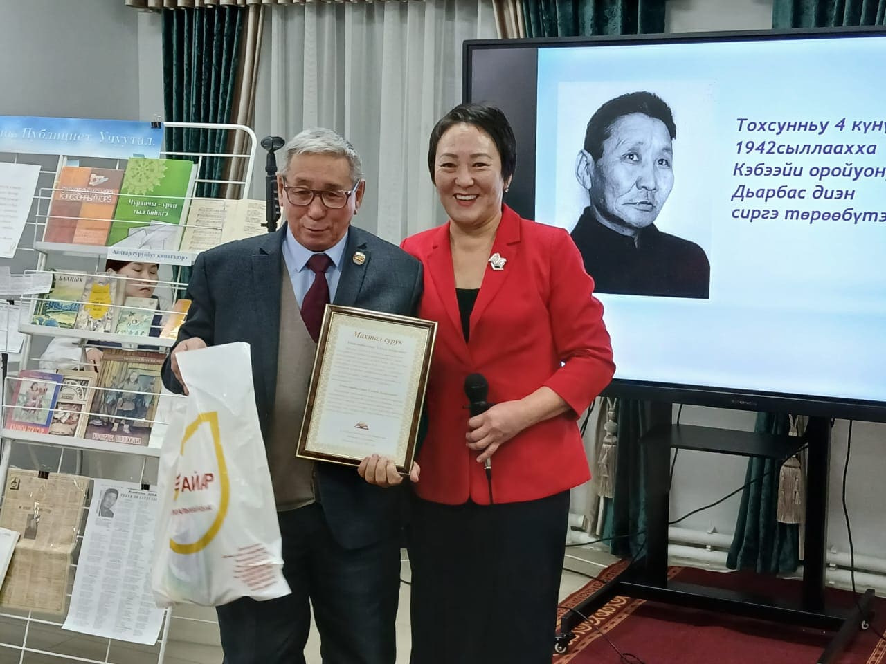 Ахсынньы 10 күнүгэр Е.А.Борисов аатынан улуустааҕы киин бибилэтиэкэҕэ Кэбээйиттэн төрүттээх бэйиэт, драматург, кэпсээнньит, публицист, декламатор, педагог Иннокентий Наумович Левин — Ньээчис “Эһиэхэ аныыбын күн уотун” саҥа кинигэтин биһирэмин дьоро тэрээһинэ ыытылынна. Кинигэ сүрэхтэниитигэр ыраах Кэбээйи улууһуттан биир дойдулаахтара, 10 тахса киһилээх делегация уонна саха народнай суруйааччыта биир дойдулаахпыт С.А.Попов-Сэмэн Тумат кэлэн кыттыыны ыллылар. Саҥа кинигэ быйыл 2024 сылга «Дани-Алмас» кинигэ кыһатыгар 200 экземплярынан, 326 сирэйинэн бэчээттэнэн Кэбээйи улууһун баһылыгын Левин Иван Иванович үбүлээһининэн тахсыбыт. Кинигэни Иннокентий Наумович бииргэ төрөөбүт убайын оҕото, сиэн балта Петрова Альбина Васильевна суруйааччы архивыттан рукопистарын хомуйан, айымньыларын таҥан « айбыт –туппут олоҕун, айымньыларын дьон-сэргэ билиэхтээх” диэн үтүө санаанан салайтаран күн сирин көрдөрбүт. Кинигэ “Оҕолорго` уонна «Хоһооннор” диэн икки улахан түһүмэхтэн турар. Оҕолорго анаммыт түһүмэххэ төрөөбүт тылы, айылҕаны таптыырга үөрэтэр-иитэр хоһооннор, остуоруйалар, пьеса, музыкальнай оонньуулар киирбиттэр. Иккис түһүмэххэ түөрт салааланан таҥыллан төрөөбүт дойду, олох, таптал, айылҕа кэрэтэ уонна анабыл хоһооннор киирбиттэр. Тэрээһин саҕаланыытыгар “Улыбка” уһуйаан кырачаан иитиллээччилэрэ Иннокентий Левин оҕолорго анаабыт хоһооннорун чоргуччу ааҕан иһиттиннэрдилэр. Биһирэми икки улуус бибилэтиэкэрдэрэ Чурапчытааҕы киин бибилэтиэкэ ааҕааччыны кытта үлэлиир отдел сэбиэдиссэйэ Кузьмина Марфа Николаевна уонна Кэбээйи улууһун Мукучу модельнай бибилэтиэкэ бибилэтиэкэрэ Им Ия Николаевна ыыттылар. Суруйааччы олоҕун, айар үлэтин, саҥа кинигэни киэҥник ырытан билиһиннэрдилэр. Иннокентий Левин 1971 сыллаахха Саха Судаарыстыбаннай университетын саха салаатын бүтэрэн Абый, Чурапчы улууһун Алаҕар нэһилиэгэр саха тылын уонна литературатын учууталынан өр сылларга үлэлээбит. Айар үлэҕэ 70 -с сыллартан саҕалаан лириик поэт быһыытынан биллэн -көстөн барбыта. «Саҥа олох» хаһыакка бастакы хоһоонноро бэчээттэммиттэрэ. «Сааскы үөрүү» хоһооннорун хомуурунньуга 1972 с., «Айдаар үс түүлэ» кэпсээннэрэ 1990с., «Баайык» кэпсээннэрэ 1994 с., суруйааччы олоҕун, айар үлэтин сырдатар “Эйэ баар буолан”, “Иннокентий Наумович Левин — Ньээчис” дьоһун кинигэлэрэ 2023 с. бэчээттэнэн тахсыбыттара. Дьоро күҥҥэ икки улуус дьоно -сэргэтэ кыттан, талааннаах поэт, суруйааччы туһунан бииргэ үлээбит, алтыспыт дьоно-сэргэтэ, уруу-хаан аймахтара ахтан санаан аастылар. Кэбээйи улууһун баһылыгын эбээһинэһин солбуйааччы Сивцев А.С., улуустааҕы библиотечнай ситим директора Спиридонова А.Д, Кэбээйи нэһилиэгиттэн бибилэтиэкэр Оконешникова С.В., кыраайы үөрэтээччи Павлов Е.А., Чурапчы улууһун баһылыгы социальнай боппуруоска солбуйааччы Кронникова М.Ф., Чурапчы улууһун култууратын управлениятын салайааччытын солбуйааччыта Смирников М.В. Чурапчытааҕы кииннэммит библиотечнай ситим директора Смирникова А.М . тыл этэн, эҕэрдэ суруктары туттардылар. Суруйааччы Иннокентий Наумович Левин төрөппүт кыргыттара Кэбээйиттэн Полина Иннокентьевна Адамова, Чурапчы олохтооҕо Туйаара Иннокентьевна Левина, аймаҕа Гаврил Прокопьевич Левин сырдатан кэпсээтилэр. Саха норуодунай суруйааччыта, биир дойдулаахпыт Семен Андреевич Попов – Сэмэн Тумат доҕорун туһуна