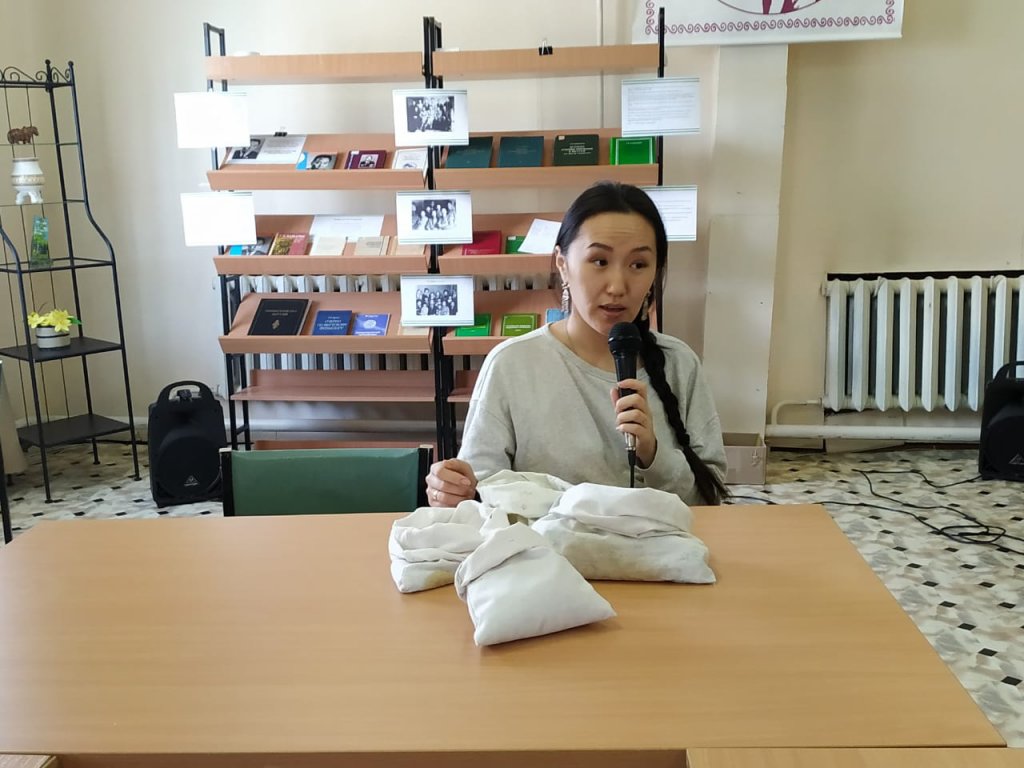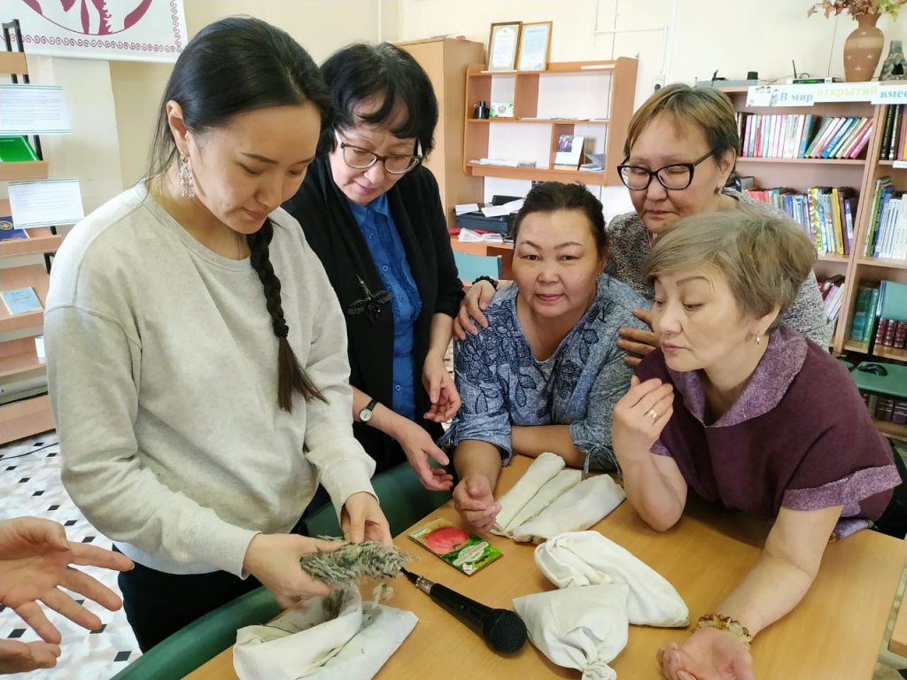 Өрөспүүбүлүкэҕэ Ийэ, улууспутугар Сир ийэ сылынан библиотека үлэһиттэрэ В.Петров — Айыл «Сэттэ кэрэ кэрдиис кэм» хоһоонунан композиция туруордулар.
