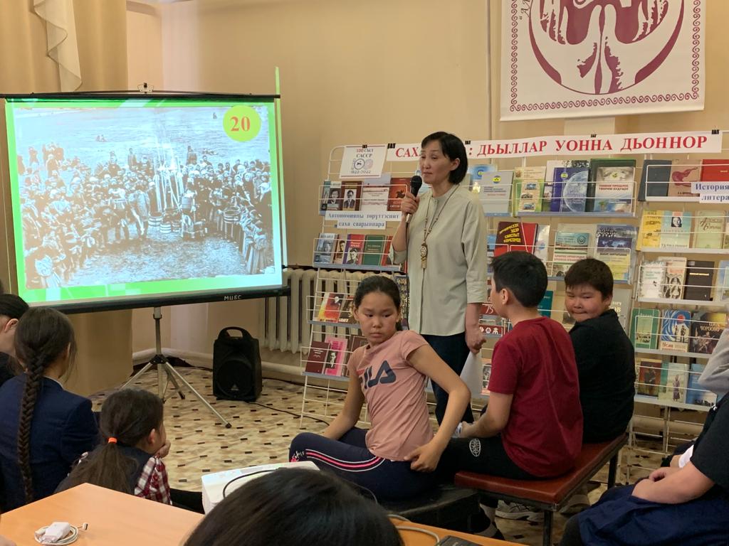 27 апреля в честь 100-летия образования автономии Якутии во всех библиотеках Чурапчинской библиотечной сети прошел единый медиаурок “100 фактов о Якутии в честь столетия Якутии”. В акции участвовали 16 библиотек. 624 детей в этот день посмотрели познавательный, интересный видеообзор: 80 фактов о географии, истории, культуре Якутии и 20 фактов о родном улусе.
