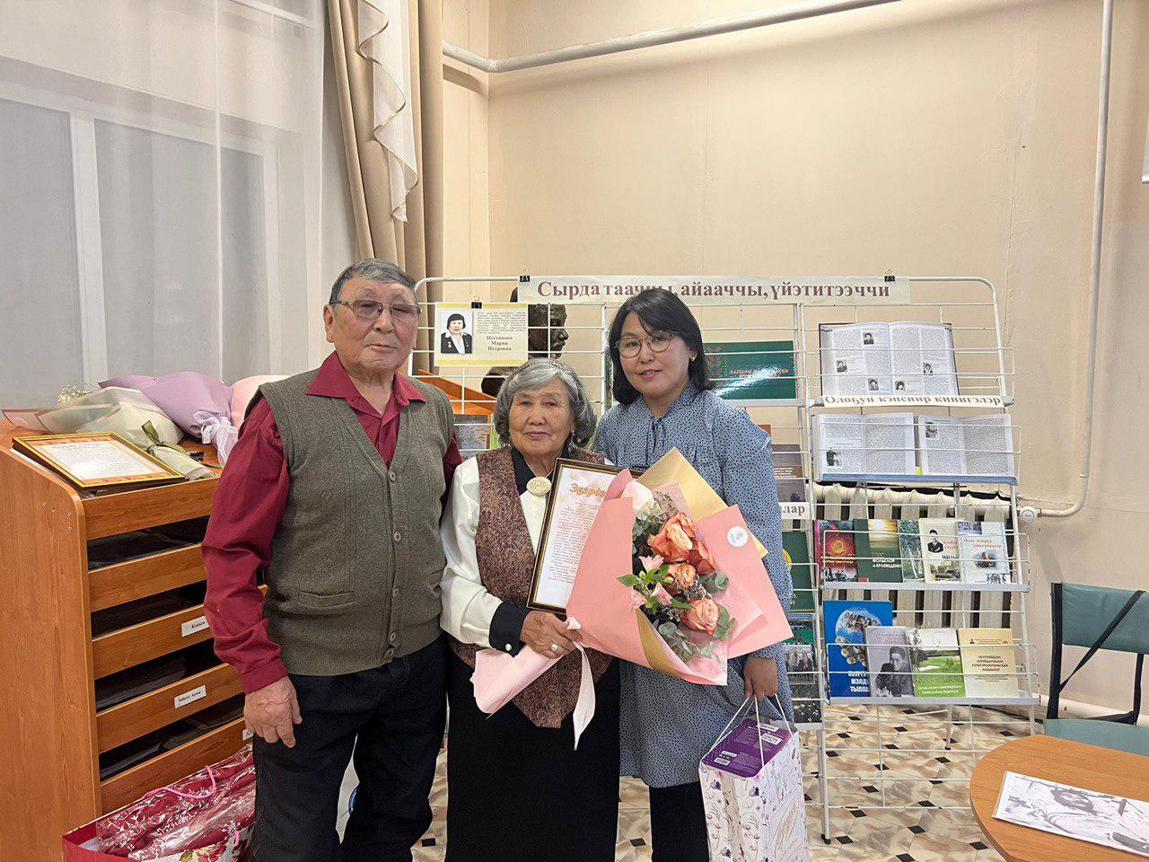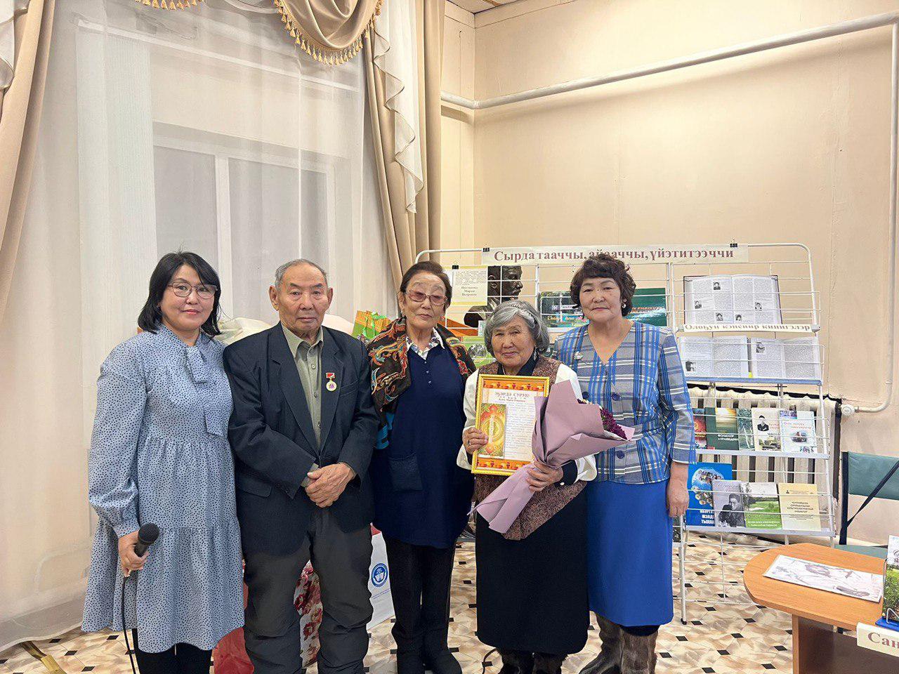 Бииргэ төрөөбүттэрин ааттарыттан Ульяна Петровна Никифорова, Василий Петрович, Мария Константиновна Чичигинаровтар үтүө ахтыыларын, махтал тылларын уонна эҕэрдэ ырыаларын бэлэхтээтилэр.