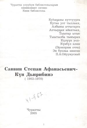 Заглавие: Саввин Степан Афанасьевич — Күн Дьирибинэ