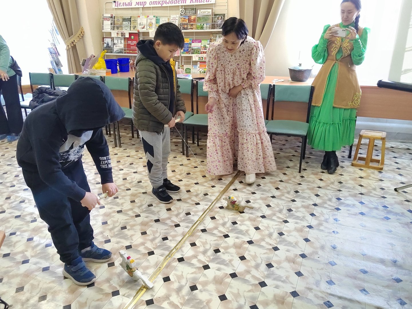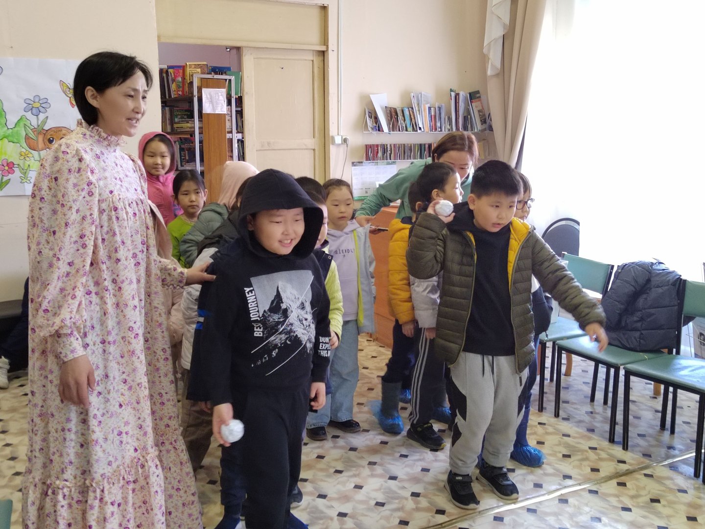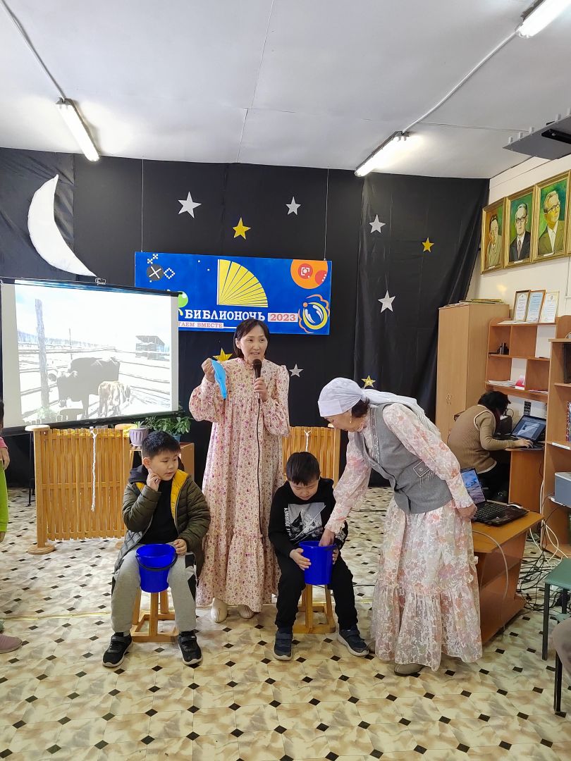 Салҕыы библиотекарь Захарова Матрена Николаевна оҕолорго сайылыкка көһүү туһунан, кини суолтатын, хайдах сайылыкка көһөллөрүн, туох сиэри-туому тутуһалларын, сайылык олоҕун, үлэтин саас сааһынан быһааран кэпсээбитин оҕолор сурдээҕин интириэһиргээн иһиттиллэр. Кырачаан ыалдьыттар бу күн сахалар саамай суолталыыр күндү астарын арыылаах алаадьыны, миньигэс саламааты амсайдылар.