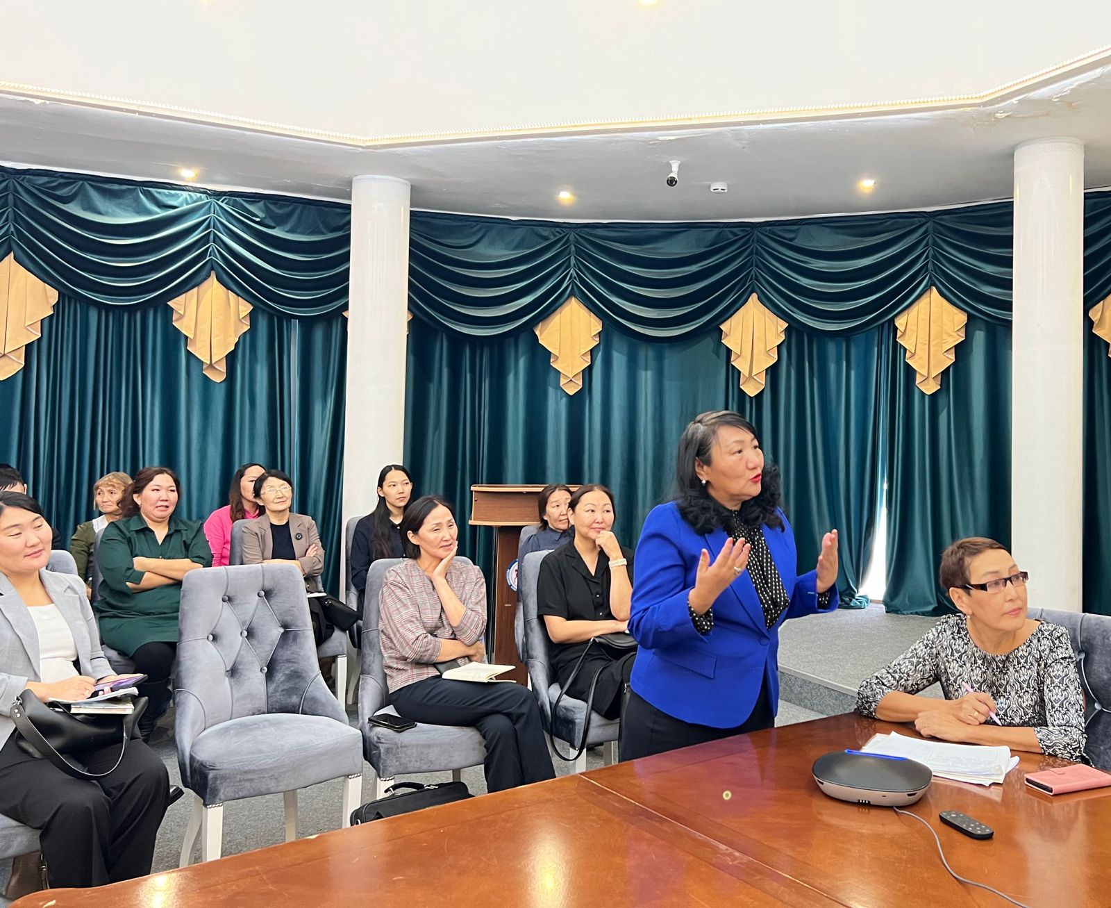 Семинары СӨ НБ научнай-методическэй киинин сүрүн бибилэтиэкэрэ Лариса Никифорова 2032 сылга дылы Саха Өрөспүүбүлүкэтигэр библиотечнэй дьыла сайдыытын стратегиятын туһунан кэпсээтэ.