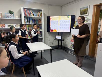 - Олунньу 16-20 күннэригэр, бастакы кылаас үөрэнээччилэригэр эбии сынньалаҥ кэмигэр, Оҕо библиотекатыгар «Төрөөбүт тыл ыллыгынан» сахалыы эйгэ тула дьарык ыытылынна. Манна оҕолор сахалыы кылгас кэпсээннэри аахтылар, ыйдар, кыыллар, көтөрдөр сахалыы ааттарын билсэн ыйытыктарга эппиэттээтилэр, таабырын таайдылар. «Муҥха», «Дьыл оҕуһа», «Тымныы оҕуһа» ойуулуктары сэҥээрэ көрдүлэр, «Айар» кинигэ кыһата таһаарар остуол оонньууларын умсугуйа оонньоотулар. Дорҕоонноохтук ааҕыынан Василина Попова «Тарбахтар», Василий Ушницкай-Сэки»Сулустар уонна ый» остуоруйалары иһиттилэр. «Таал-таал эмээхсин» норуот остуоруйатын сыахай куукулаларынан билиһиннэрдибит, ону бэйэлэрэ хатылаан эмиэ оонньоон көрдөрдүлэр. Уонна онтон наһаа үөрдүлэр. Кылгас кэм иһигэр оҕолор элбэҕи биллилэр, иллэҥ кэмнэрин туһалаахтык атаардылар.