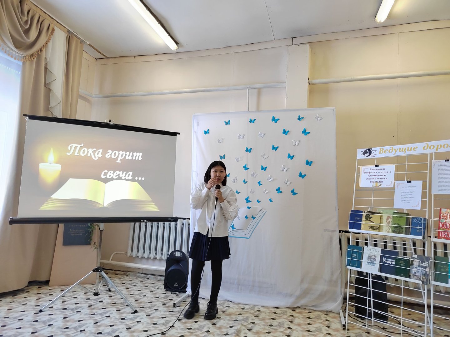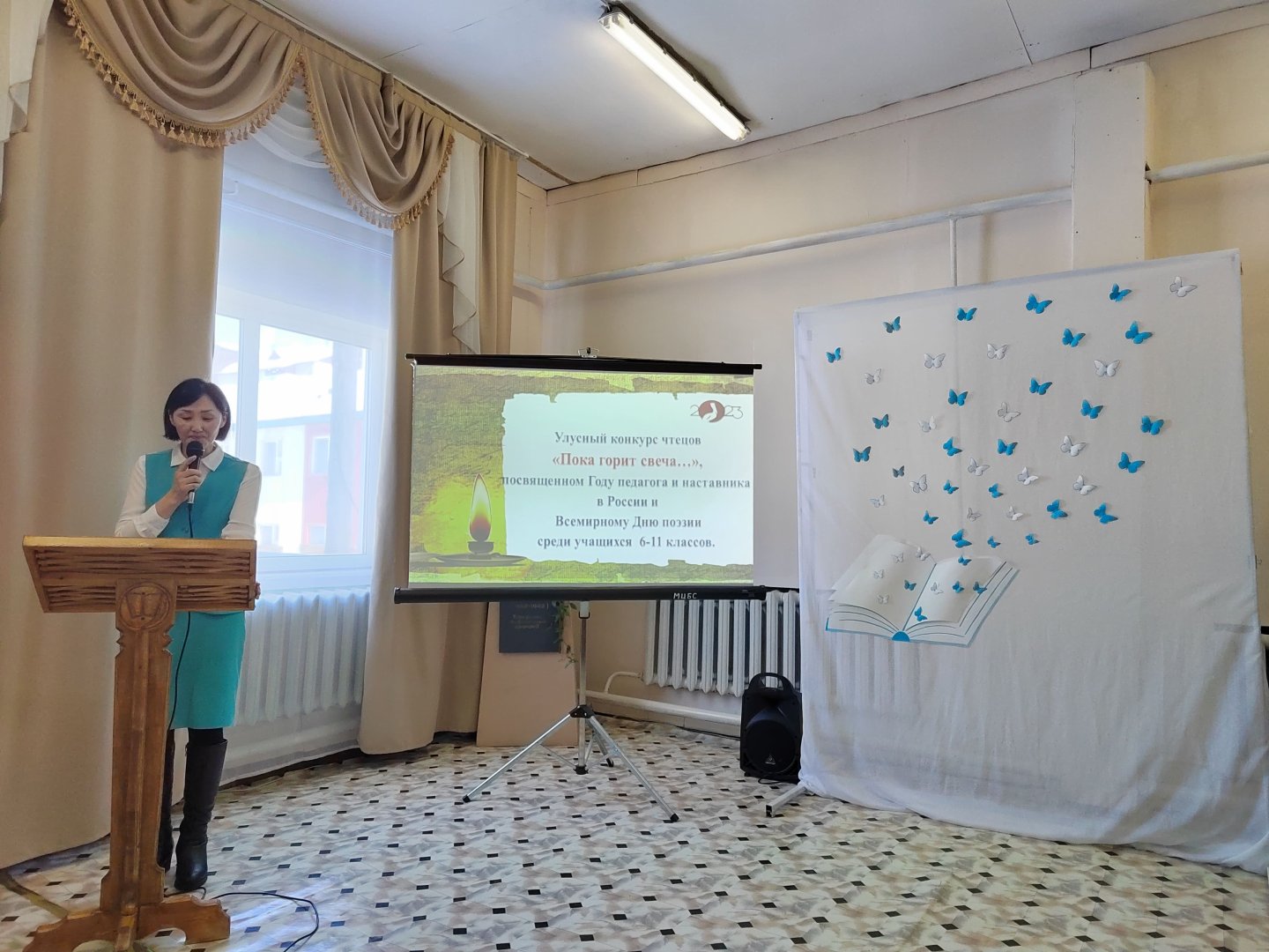 Eжегодно 21 марта отмечается Всемирный день поэзии. Праздник поэзии был учрежден Юнеско и отмечается с 1999 года. В этот день во всех странах проводятся встречи с поэтами и писателями, литературные вечера, уроки, игры, акции. В Чурапчинской центральной библиотеке проведение дня поэзии стало доброй традицией. Улусный конкурс чтецов «Пока горит свеча» проводится 5 год и каждый год собирает ребят которые любят поэзию, интересуются творчеством русских писателей. В этом году конкурс посвящен Году педагога и наставника в России. Цель конкурса: через поэтическое слово — воспитание уважительного отношения к профессии педагога, труду педагогов, старшему поколению, содействие раскрытию творческого потенциала и знакомство с творчеством русских писателей. В этом году в конкурсе приняли участие 18 учащихся из школ улуса. Выразительно и проникновенно звучали стихи русских писателей А. Дементьева, М.Садовского, Н.Веденяпиной, С.Викулова, М. Львовского, Л. Сироты и др. В выбранных произведениях учащиеся старались передать своё понимание текста, выразить свои чувства. Несмотря на свой юный возраст, ребята показали достойное чтение произведений известных поэтов. Также ребята кратко рассказали об авторах произведений. В составе жюри конкурса под председательством библиотекаря ОКиО Чурапчинской центральной библиотеки В.И. Душкиной работали преподаватель Чурапчинского агро-технического колледжа Р.С. Пономарева и учитель русского языка и литературы Чурапчинской СОШ им. С.А. Новгородова О.Г. Попова. Жюри оценивало выразительность, эмоциональность исполнения, артистичность участников.По итогам конкурса по направлению «Стихи»среди 5-6 классов победителями стали:1 место — Адамов Дамир, 5 класс, Бахсытская СОШ им. Д.Г. Барашкова2 место – Яковлев Ярик – 6 класс, Чурапчинская СОШ им. С.А.Новгородова3 место – Макаров Роман – 6 класс, Чурапчинская СОШ им. С.А.НовгородоваСреди 8-9 классов победителями стали:1 место Аммосова Мадина – 8 класс, Чурапчинская СОШ им. И.М Павлова2 место Шапошников Игорь – 8 класс, Чурапчинская СОШ им. С.А. Новгородова3 место – Дьячковская Дайаана – 8 класс, Чурапчинская СОШ им. И.М.ПавловаПо направлению «Монолог» победителями стали:1 место – Сотников Дамир – 6 класс, Чурапчинская СОШ им. И.М.Павлова2 место Феофанов Иосиф – 10 класс, Чурапчинская СОШ им. И.М.ПавловаСпециальные призы жюри вручены Мордускиной Далаане и Макаровой Марине, ученицам 6 класса Чурапчинской СОШ им. С.А.Новгородова.Победители каждой возрастной категории были награждены грамотами и призами, участникам конкурса вручены сертификаты.От всей души поздравляем и благодарим всех детей за участие в конкурсе чтецов, за их огромный труд и талант, а также их учителей! Будьте всегда также активными, бодрыми, позитивными! участвуйте в мероприятиях библиотеки, любите стихи, читайте стихи!