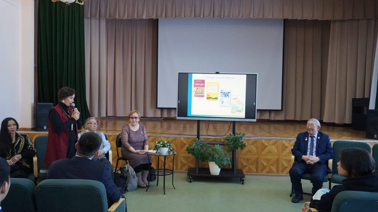 «Айар үлэ алгыстаах аартыгынан» кинигэ быыстапката.Көрсүһүүгэ Норуодунай суруйааччы Сэмэн Тумат кинигэни хайдах ааҕарга сүбэ биэрэн оҕолорго кэпсээтэ.