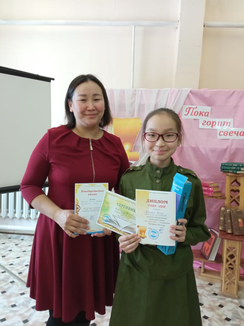 19 марта в центральной улусной библиотеке прошел конкурс чтецов «Пока горит свеча», посвященный Всемирному дню поэзии. Этот конкурс проходит третий раз и становится доброй традицией библиотеки. Конкурс посвящен творчеству русских поэтов и писателей. Каждый год праздник поэзии собирает ребят, которые любят читать стихи на могучем русском языке. В этом году приняли участие 24 учащихся. Победителями конкурса стали: