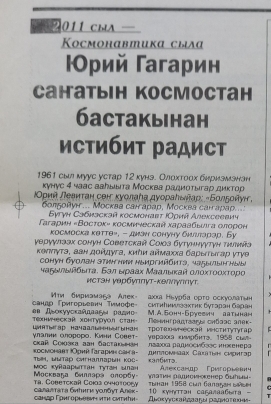 РФ үтүөлээх бырааһа, Ньурба улууһун бочуоттаах oлoxтooҕo Николай Николаев «Саха Сирэ» хаһыакка 2011 с. алтынньы 23 күнүгэр тахсыбыт «Юрий Гагарин саҥатын космостан бастакынан истибит радист» ыстатыйатын билиһиннэрэбит.